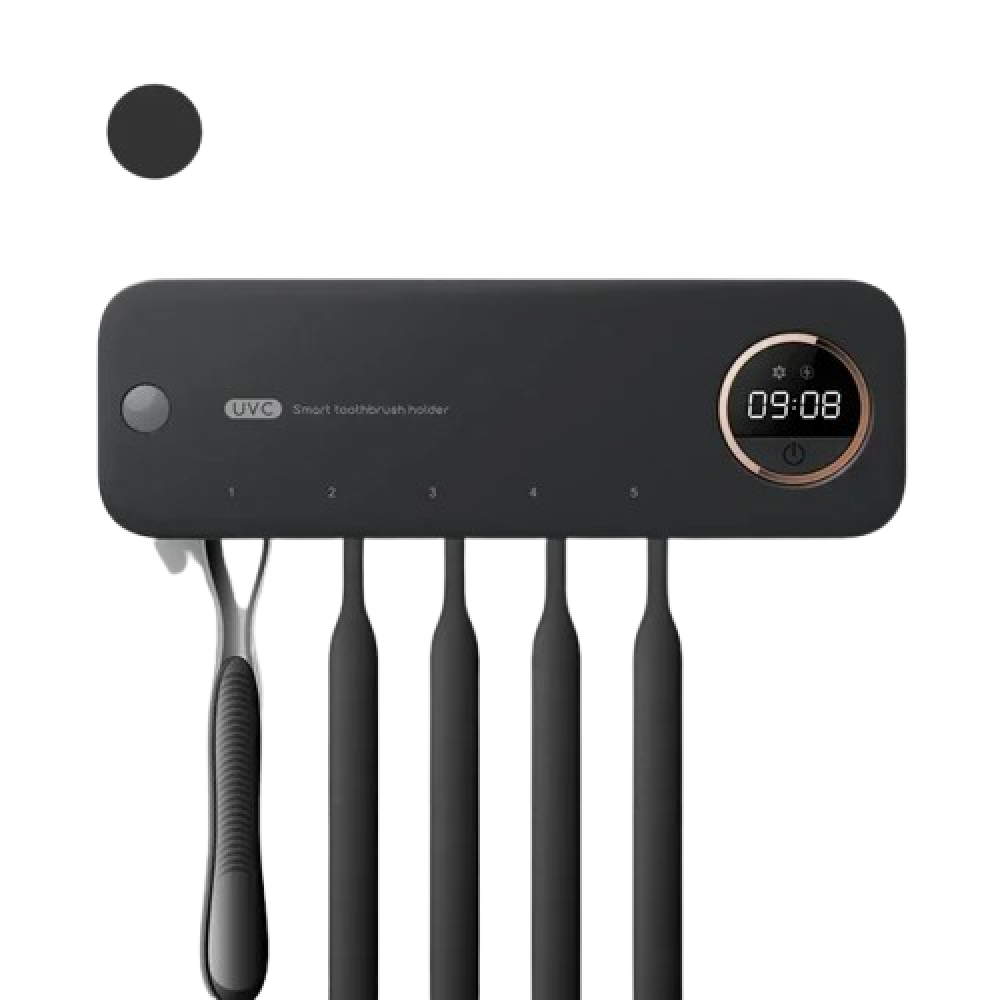 🔹 معقّم فرشاة أسنان بالأشعة فوق البنفسجية خلك مطمّن على نظافة فرش أسنانك كل يوم ✨، الجهاز يعقّم الفرش بالأشعة فوق البنفسجية ويقضي على الجراثيم والبكتيريا 👌. يجي مع شاشة LED لعرض الحالة، وقابل لإعادة الشحن 🔋. تقدّر تثبته على الجدار بسهولة ويشتغل كحامل فرشاة أنيق يضيف لمسة مرتبة لحمامك 🚿. عملي، صحي، وحل مثالي لكل عائلة 💙.